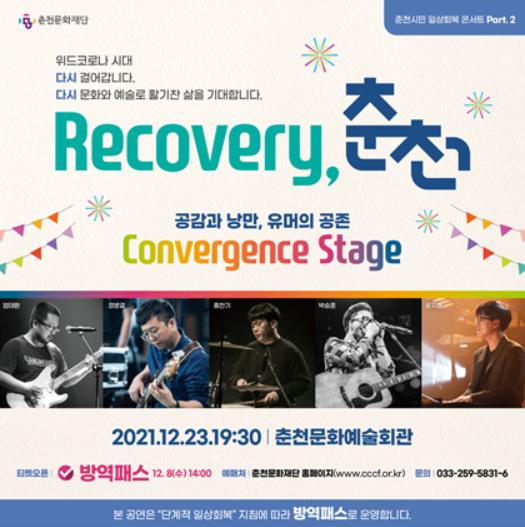 춘천문화재단은 오는 12월 23일 저녁 7시 30분 춘천문화예술회관에서 춘천시민 일상 회복 콘서트 Part 2 [Recovery, 춘천] 공연을 개최한다.