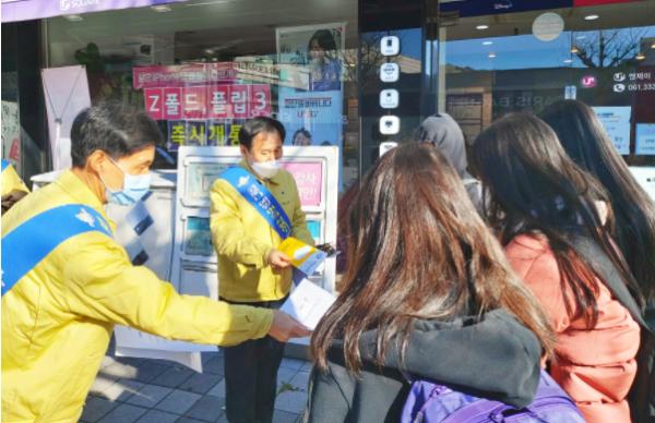 전라남도 나주시는 13일 정찬균 부시장, 정석규 안전도시건설국장관 등 관계 공무원과 경찰서, 소방서를 비롯한 유관 기관·사회단체회원 40여명이 참여한 가운데 중앙로 사거리 일원에서 민관 합동 코로나 방역 홍보 캠페인을 실시했다고 밝혔다.