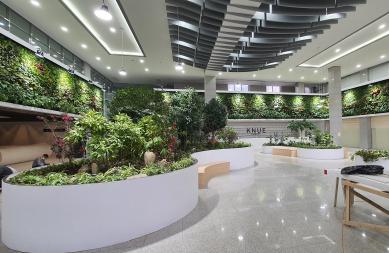 지난 6월에 착공한 이 사업은 대학교 도서관 700㎡에 9억 원의 사업비를 들여 스파트필름 등 상록 관엽식물 49종 1만 1543본을 식재해 사계절 푸르름이 가득한 공간으로 조성했다.