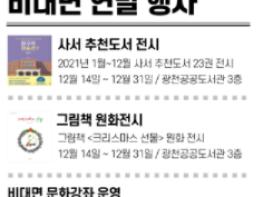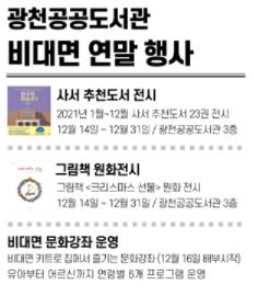 홍성군은 연말을 맞아 광천공공도서관에서 오는 12월 31일까지 도서 및 원화 전시프로그램, 비대면 체험 프로그램 등 다양한 행사를 운영한다.