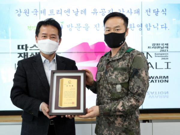 홍천군은 지난 12월 13일 박정순 강원시설단장 등 6명에게 강원국제트리엔날레 유공자에게 감사패 및 표창장을 수여했다.