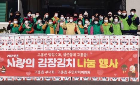 고흥읍은 지난 12일부터 13일까지 2일간 고흥읍사무소에서 고흥읍 새마을부녀회, 주민자치위원회, 기관단체, 공무원 등 50여명이 참여한 가운데 “2021.사랑의 김장김치 담그기 행사” 를 가졌다.