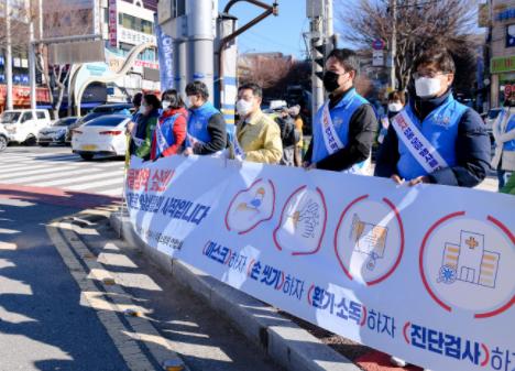 시민들에게 연말 이동?모임 자제, 마스크 착용, 백신접종 등을 당부하고, 사적모임은 미접종자 1명 포함 8인까지 허용되는 등 강화된 단계적 일상회복 방역수칙을 홍보하며 마스크 등을 배부했다.