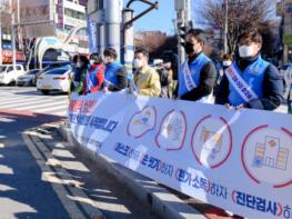 여수시가 13일 민?관 합동으로 부영3단지 사거리, 여수엑스포역, 읍면동별 지정장소에서 연말연시 모임 및 이동자제 캠페인을 실시했다.