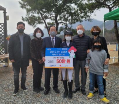 영광군 유소년승마단 박의진 (영광초 6학년)학생은 지난 11일, 지역 내 어려운 이웃을 위해 사용해 달라며 2021년 익산시장배 전국 승마대회 우승상금 50만 원 전액을 영광군에 기탁하였다.