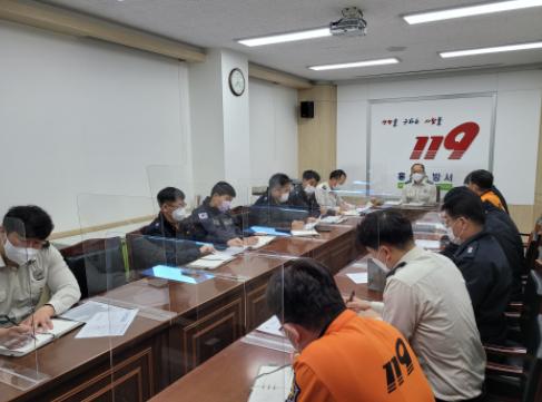 홍성소방서는 지난 13일 본서 2층 소회의실에서 코로나19 확진자 증가에 따른 대책회의를 진행했다고 밝혔다.