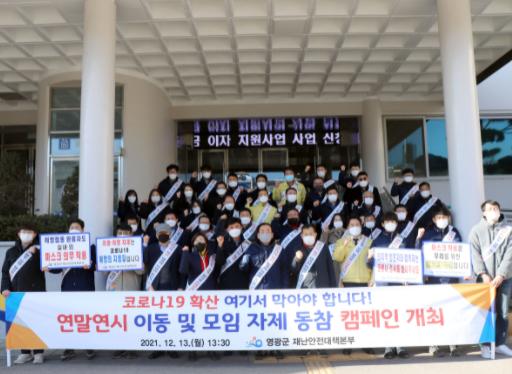 영광군은 지난 13일 영광군, 영광군의회, 안전보안관 등 90여 명의 관계자가 참여한 가운데‘연말연시 이동 및 모임 자제 캠페인’을 실시했다.