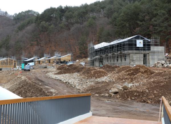현재 갯골자연휴양림의 공정률은 총65%로 관로공사 및 건축외부공사 는 완료된 상태며, 내장공사 및 조경 등의 일련의 공정을 22년 6월말까지 추진할 계획이다.