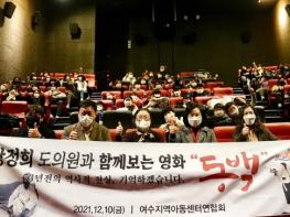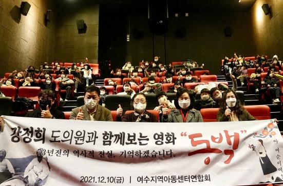 전남도의회 강정희 보건복지환경위원장(더불어민주당?여수6)이 지난 10일, 여수 CGV에서 여수지역아동센터연합회와 함께 여순사건을 주제로 한 영화 ‘동백’을 관람했다.