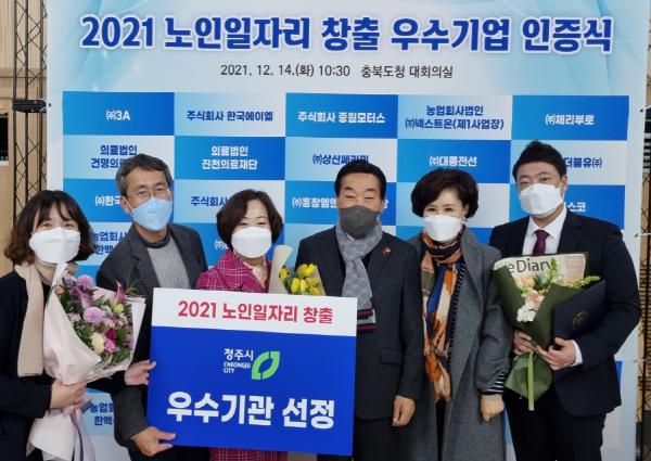 청주시는 지난 14일 충청북도청에서 열린 ‘2021년 노인일자리 창출 우수기업 인증식’행사에서 노인일자리 창출 우수기관으로 선정되어 표창과 함께 상사업비 5천만 원을 받았다.