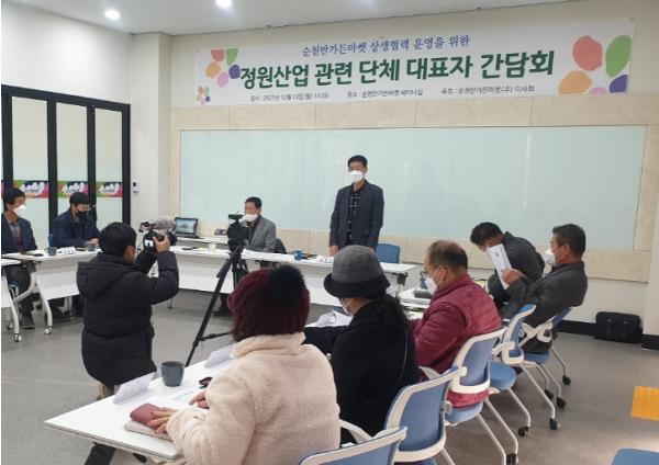 농업회사법인 순천만가든마켓 주식회사는 지난 13일 순천만가든마켓 상생협력을 위한 정원산업 관련 단체 간담회를 열어 관련 단체들과 상생협력하기로 의견을 모았다.