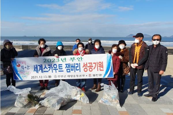 부안군애향운동본부는13일 변산해수욕장에서 환경정화활동을 펼쳤다.