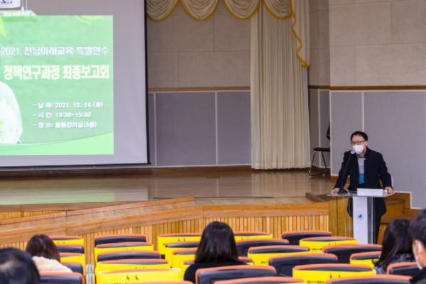 전남교육정책연구소가 14일‘2021. 전남미래교육 특별연수 정책연구과정 최종보고회’를 갖고 미래학교, 학교업무정상화, 학교자치, 혁신교육 등 연구성과를 공유했다.