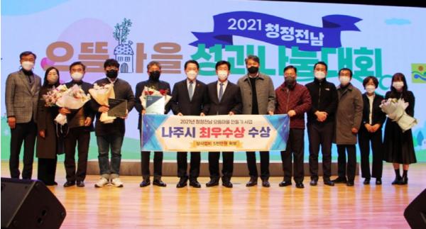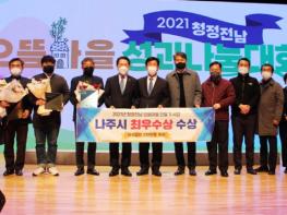 나주시는 14일 전남도청 김대중강당에서 22개 시·군을 대상으로 열린 청정전남 으뜸마을 만들기 성과대회에서 최우수상 수상과 함께 시상금 5천만원을 확보했다고 밝혔다.