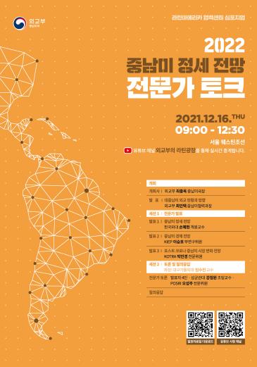 외교부는 12.16. 오전 서울 웨스틴조선호텔에서 「2022 중남미 정세 전망 전문가 토크」를 개최할 예정이다.