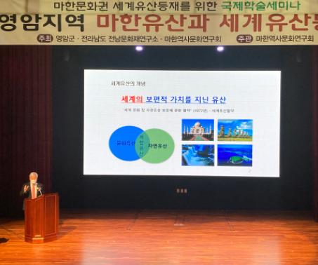 지난 12월 10일 오후 1시 영암 기찬랜드 트로트센터 공연장에서 전남문화재연구소·마한역사문화연구회가 주최하고 마한역사문화연구회 주관, 영암군이 후원한 ‘영암지역 마한 유산과 세계유산 등재’를 주제로, ‘마한문화권 세계유산 등재를 위한 국제학술 세미나’가 열렸다.