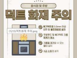 후드와 덕트 화재를 예방하기 위해서는 △ 배기 덕트 0.5mm 이상 강판 등 불연재료 설치△주기적인 기름 찌꺼기 청소 △ 기름 제거 필터 설치 등을 지켜줘여하며 주방화재에 대비한 k급 소화기를 비치해야 한다.