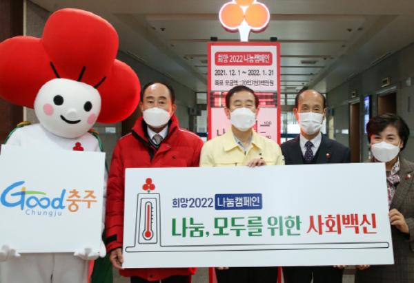 충주시는 15일 충주시청 로비에서‘희망 2022 나눔 캠페인’사랑의 온도탑 제막식을 열었다.