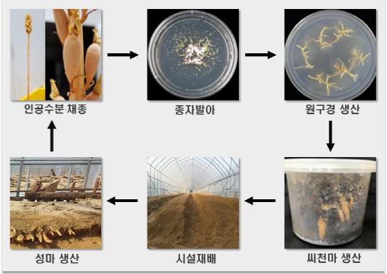 산림미생물연구과 한심희 과장은 “유성번식 씨천마 시설재배법을 현장에 도입함으로써 약효가 뛰어난 고품질의 천마가 안정적으로 생산될 수 있도록 기반 연구를 지속적으로 수행하겠다.”라고 말했다.
