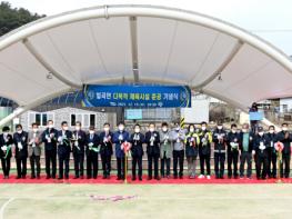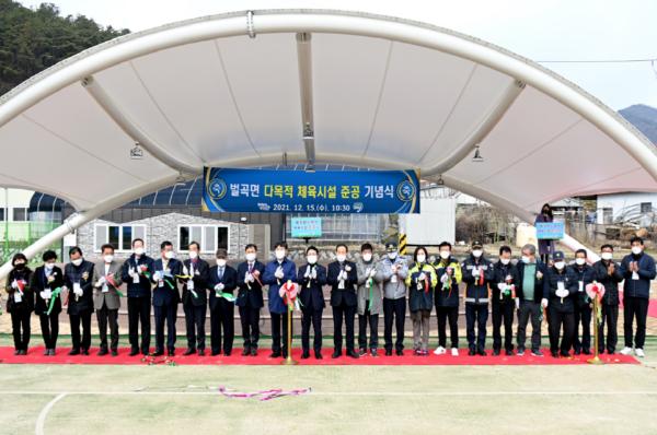 논산시는 15일 벌곡면 한삼천리 일원에서 황명선 논산시장을 비롯해 구본선 논산시의회 의장, 전태하 벌곡면 이장단장, 이정구 벌곡면 주민자치회장, 김완중 새마을지도자회장, 김금자 새마을부녀회장, 김창수 벌곡면 노인회분회장 등 주민이 함께 모인 가운데 ‘벌곡면 다목적 체육시설’ 준공 기념식을 가졌다.