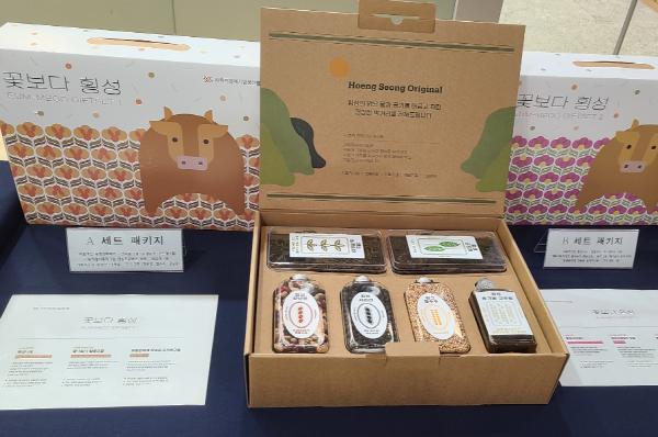 횡성군과 횡성군사회적경제지원센터가 함께 추진한 2021 지역특화사업 「횡성이 주는 선물」패키지 상품 개발 품평회가 15일, 횡성군청 로비에서 열렸다.