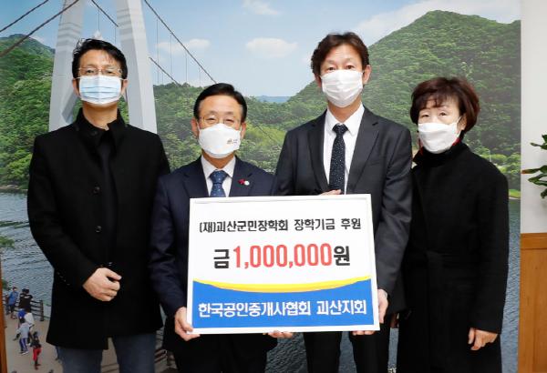 또한 괴산군 관내 부동산중개업 발전 및 부동산시장 활성화를 위해 노력하고 있는 한국공인중개사협회 괴산지회는 지역 인재 양성과 명문학교 육성을 통해 지역 발전에 힘써달라며 장학금을 기탁했다.