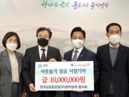 현대삼호중공업(주)협력업체 협의회에서는 지난 14일 영암군 저소득층에게 도움을 주기 위해 이웃돕기 성금 1,000만원을 기탁하였다.
