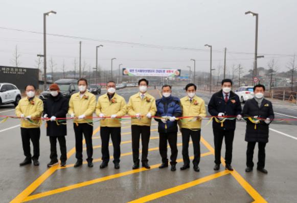 양승조 지사와 김명선 도의회 의장, 길영식 홍성부군수, 지역 주민 등 90여명이 참석한 가운데 연 이날 행사는 내포 도시첨단산단 진입도로 개설공사 경과 보고, 테이프 커팅 등의 순으로 진행했다.