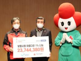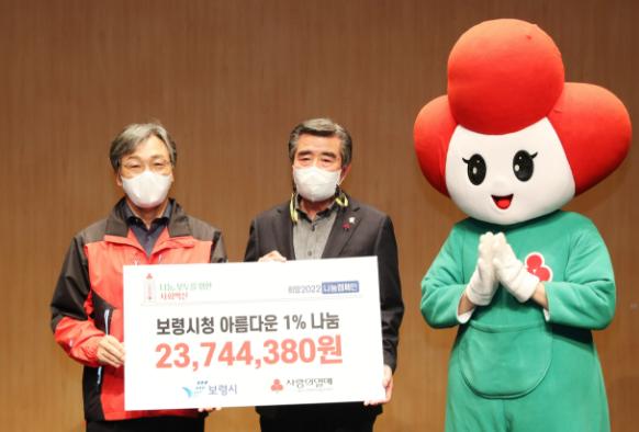 보령시청 소속 공무원과 공무직 1196명이 지난 1년간 아름다운 1% 나눔운동으로 모금한 2374만 원과 보령LNG터미널(주) 및 삼화원종에서 각각 2000만 원을 기탁했다.