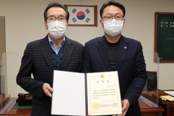 충북도의회 산업경제위원회는 15일 10개 부서(기관)를 대상으로 실시한 2021년 행정사무감사 결과 수감 우수부서로 신성장산업국을 선정해 표창장을 수여했다.