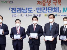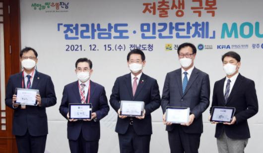 전라남도는 15일 도청 접견실에서 김영록 지사와 송재선 전남도교회총연합회장, 최운창 전남도의사회장 등이 참석한 가운데 출생친화 환경 조성 및 저출생 극복을 위한 전남도-민간단체 업무협약을 했다.