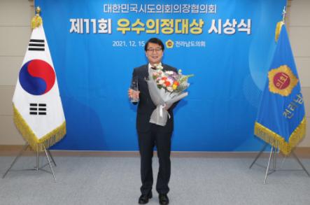 전라남도의회 김태균 의원(보건복지환경위원회ㆍ광양)은 15일, 대한민국시도의회의장협의회가 주관한「제11회 우수의정대상」을 수상했다.