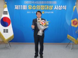 ‘우수의정대상’은 매년 지방자치 발전 및 주민들의 삶의 질 향상에 기여하고 활발한 의정활동을 펼친 광역의원에게 수여하는 상으로, 올해는 코로나19 확산 방지를 위해 각 시·도의회에서 개별적으로 시상식을 진행했다.