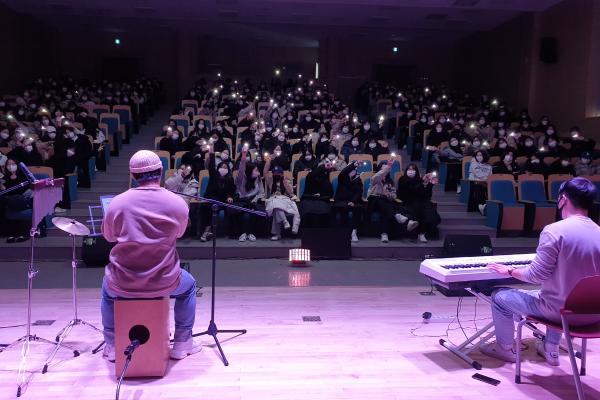 학생들은 강당에서 버스킹 공연, 마술공연 등의 다채로운 공연을 관람하며 힐링의 시간을 가졌다.
