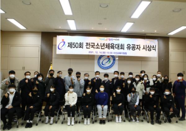 서산교육지원청은 12월 14일 서산교육지원청 어울림실에서 제50회 전국소년체육대회 입상한 선수, 지도자, 지도교사에 대한 장학금 및 포상금 수여식을 실시했다.