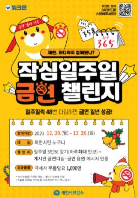 제천시 보건소가 ‘일주일씩 48번 다짐하면 1년 금연 성공’이라는 주제를 담아, ‘작심일주일 금연챌린지’를 진행한다.