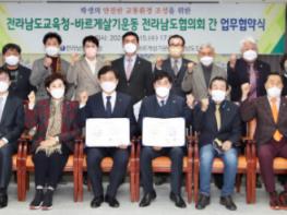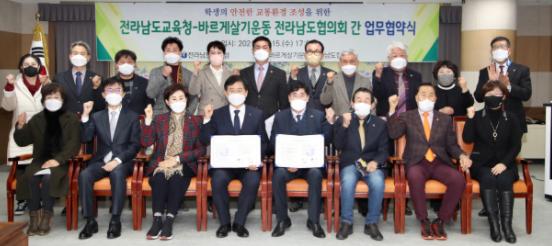 전라남도교육청과 바르게살기운동 전라남도협의회가 12월 15일 전라남도교육청 비즈니스실에서‘학생의 안전한 교통환경 조성’을 위한 업무협약을 체결했다.