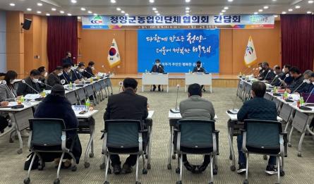청양군이 지난 15일 군청 대회의실에서 농업인단체협의회, 군내 농협 조합장 등과 함께 농촌 발전을 위한 간담회를 개최했다.