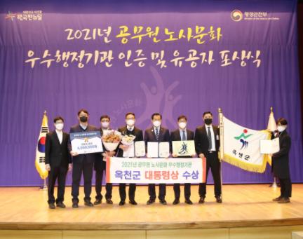 옥천군은 합리적인 노사문화를 선도한 기초자치단체로 인정받아 2021년도 공무원 노사문화 최우수기관으로 선정되어 대통령상을 수상했다.