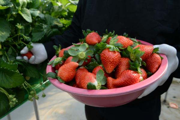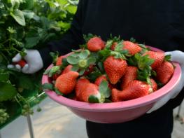16일 군에 따르면 이번에 시범 보급되는 딸기‘홍희’는 관내 육종 전문회사 헤테로와 농업기술센터의 합작으로 7년간의 개발과 2년간의 딸기 실증시험포 검증 재배를 거쳐 올해 처음 선보이는 품종이다.