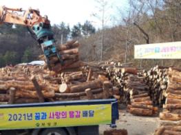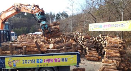 이번에 공급된 땔감은 2021년 숲 가꾸기와 임도 개설 등 산림사업으로 발생한 부산물을 공공 산림 가꾸기 근로자와 자체 보유하고 있는 장비를 투입하여 수집하고 산물집하장으로 집재한 후 땔감 용도로 제작했다.