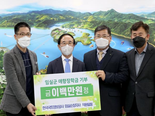 마지막으로 한국국토정보공사 임실순창지사 직원들이 십시일반 정성을 모아 지역의 참된 일꾼을 키우는 데 힘을 보태기 위해 애향장학금 2백만을 기탁 했다.