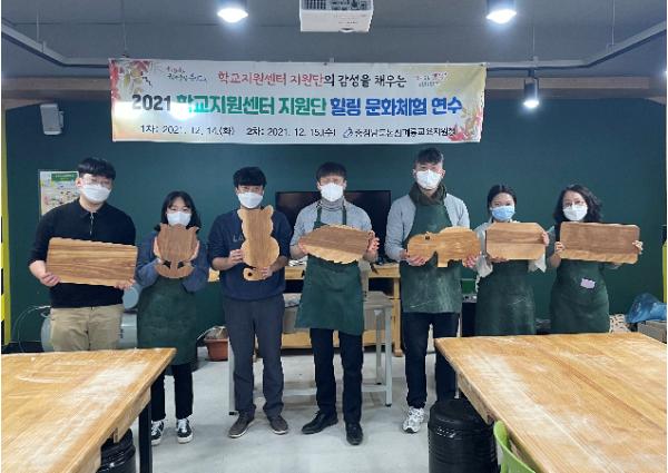 논산계룡교육지원청 학교지원센터는 14일, 15일 인원을 이틀에 나눠 학교지원센터 지원단을 대상으로 목공체험과 원예체험 연수를 실시했다.
