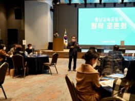 한편, 충남교육청은 매년 교육공동체 의견 수련회를 추진하고 있으며 올해는 교육회복과 미래교육을 향한 충남교육 공동체 생각자리라는 주제로 ‘충남교육 공동체 원탁토론회’를 1월까지 한 달간 개최한다.