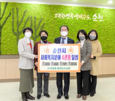순천시는 2021년 사회복지 분야 평가에서 4관왕의 영예를 안았다.