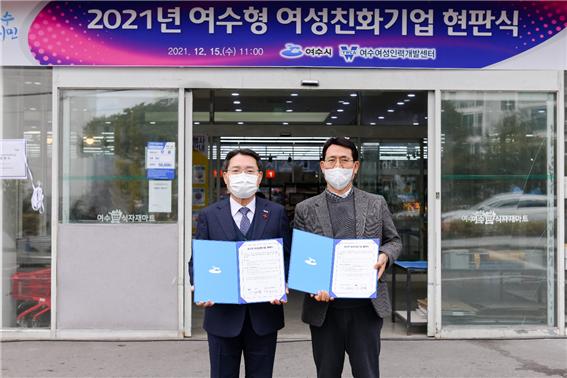 여수시는 지난 15일 (유)여수식자재마트와 여수형 여성친화기업 협약을 맺고 현판식을 가졌다고 밝혔다.
