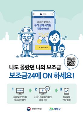 영암군은 보조금24 전국 시행에 대비하여 읍·면에 보조금24 창구담당자를 지정하고, 복지·농업·축산 등 다양한 분야의 보조사업들을 보조금24를 통해 안내하고 있다.