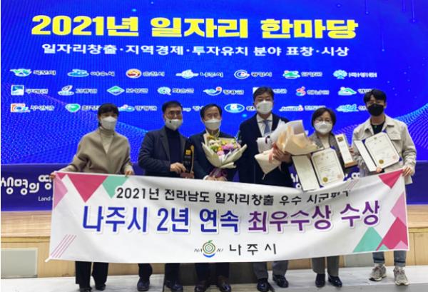 나주시가 전라남도 일자리 창출 평가에서 2년 연속 최우수상의 쾌거를 달성했다.