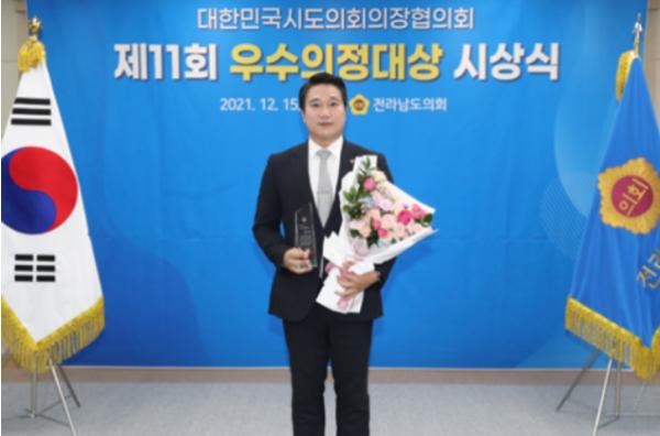 전라남도의회 박선준 의원(고흥2ㆍ더불어민주당)이 15일 열린 ‘2021 제11회 우수 의정대상’ 시상식에서 지역발전에 기여한 공로를 인정받아 의정대상을 수상했다.