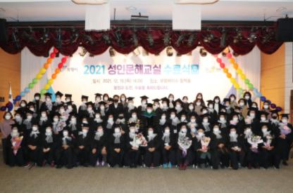 시는 16일 보령베이스 동백홀에서 김동일 보령시장, 수료생, 교육강사 등 관계자가 참석한 가운데 2021년 성인문해교실 수료식을 가졌다.